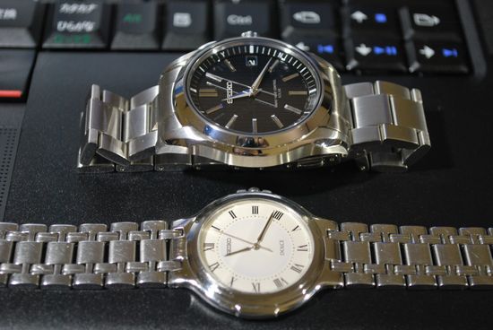 下は SEIKO BRIGHTZ SAGZ047 と並べた写真。やはり DOLCE の小ささが際立つ。
