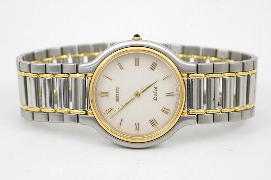 ドルチェといえば、若い頃タグ・ホイヤーを使うようになるまで 7741-6050 (下の写真)を、かなり長期間に亘って愛用していた。この頃はケース直径3.2cm程度の薄型クォーツが流行っていたと思う。あの頃はこれが上品でいいと思ったが、現在このような時計を着用するのは、ちょっと恥ずかしいだろう。