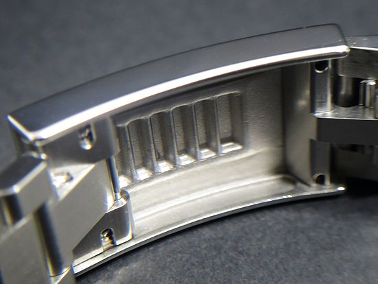 バックル側面にいくつか穴があり微調整できる物は問題ないが、見た目が悪いためかバックル部に穴が無く微調整ができない時計も多い。高級時計には調整穴が無い物が多いように思う。
