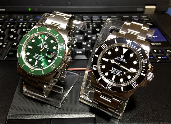 サブマリーナは、ありふれた腕時計なので、よくある黒のサブデイトではなく、人と被ることの少ないグリーンサブとノンデイトサブを所有。
