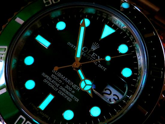 夜光塗料はクロマライトで、とても美しいブルーに光る。