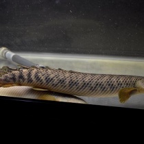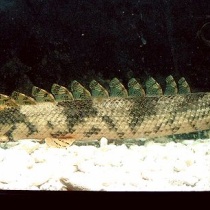 古代魚のマンファリ(キューバンガー)を飼育して約4ヶ月が経った。この手の魚の飼育は容易で、落としてしまうことは先ず有り得ない。現在約30cm、幼魚期は体側に帯が入っているが、まだ痕跡が残っている。肉食魚であるが、人工飼料(鯉の餌など)で飼育すると楽である ...