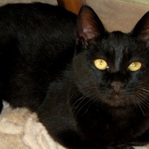 ゲームやアニメでよく登場する人気の黒猫。本物だって激かわいいけど、真っ黒だから写真うつりが悪くて・・・。カメラのストロボを使用すると、目が光る。黒いシルエットに光る金色の目が魅力的であり、毛並みはとても艶やかで触り心地もいい。写真にすると怖いけど、「ごは ...